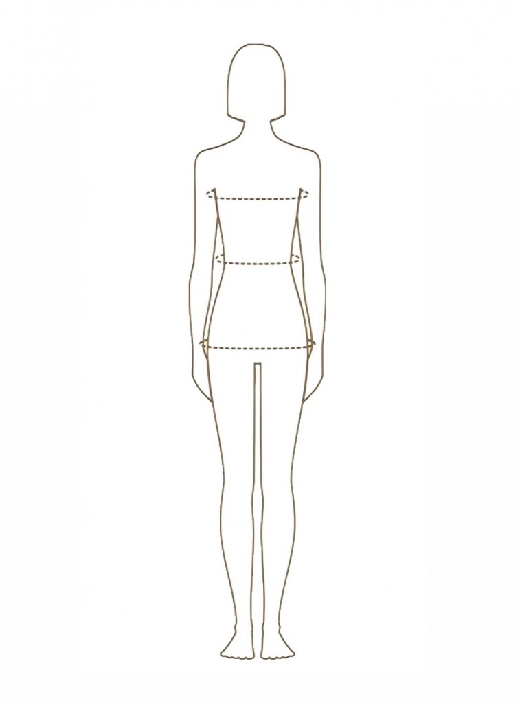 Измерьте грудь по самым выступающим точкам груди. Руки опущены. Талия измеряется по самому узкому месту тела. Бедра измеряются по самым выступающим точкам ягодиц.